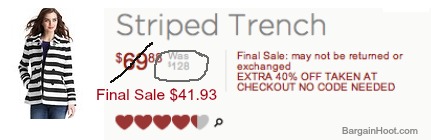 Striped Trench Tall xxs left, Petite L left/ Tweed jacket 0 & 10 left / Royal blue and black stripe six petite left