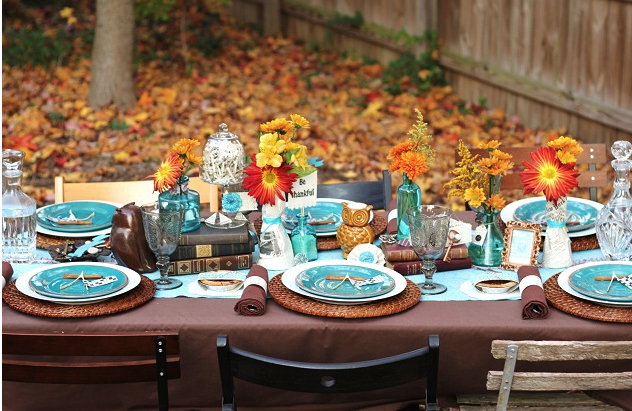 I love the charming vintage glasses that add that beautiful touch of autumn color.